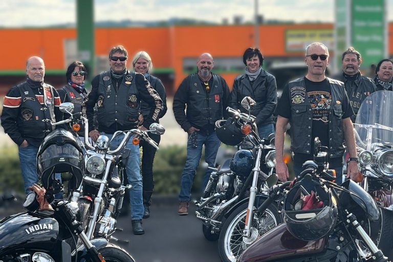 ein Motorrad Club mit Anhängern von amerikanischen V2-Motorrädern und Mitgliedern aus dem Großraum „Bingen am Rhein“ und „Bad-Kreuznach“.